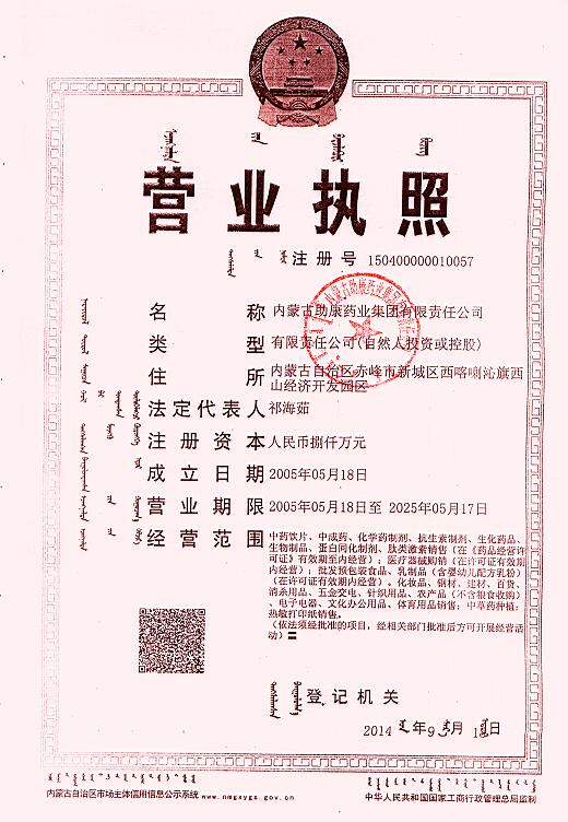 內(nèi)蒙古助康藥業(yè)集團有限責任公司,隸屬于內(nèi)蒙古助康藥業(yè)集團,是助康藥業(yè)集團的母公司。內(nèi)蒙古助康藥業(yè)集團下轄:內(nèi)蒙古助康藥業(yè)集團有限責任公司、內(nèi)蒙古五洲助康醫(yī)藥有限責任公司、內(nèi)蒙古神龍?zhí)┛滇t(yī)藥有限責任公司、內(nèi)蒙古助康醫(yī)療器械、赤峰攜手助康醫(yī)療器械有限責任公司。公司坐落于赤峰市新城區(qū)機場路西側(cè)喀旗西山經(jīng)濟開發(fā)區(qū),占地面積42畝,建筑面積1.2萬㎡。其中辦公和后勤用房5000㎡、“GSP”標準倉庫7000㎡。注冊資本8000萬元,實際投資8000萬元.我公司是一家以批發(fā)經(jīng)營中成藥、化學藥制劑、抗生素制劑、生化藥品、生物制品、中藥飲片、中蒙藥材種植以及醫(yī)療器械經(jīng)營的綜合性醫(yī)藥批發(fā)公司,總注冊資金1.2億,固定資產(chǎn)3.8億.
