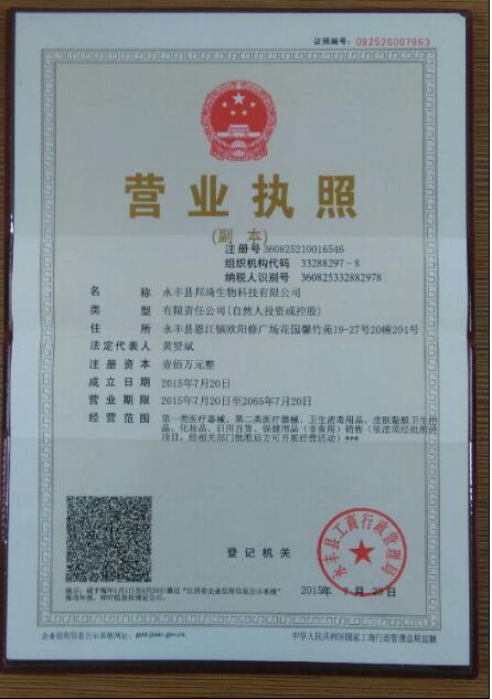 江西邦琦堂生物科技有限公司,主要經(jīng)營(yíng)類醫(yī)療器械、第二類醫(yī)療器械、衛(wèi)生消毒用品、皮膚黏膜衛(wèi)生用品、化妝品、日用百貨、保健用品(非食用)銷售(依法須經(jīng)批準(zhǔn)的項(xiàng)目;經(jīng)相關(guān)部門批準(zhǔn)后方可開展經(jīng)營(yíng)活動(dòng)),于2015年7月20日在吉安工商局登記注冊(cè),業(yè)務(wù)經(jīng)理是黃賢斌,公司注冊(cè)資本100(萬元)。我們有好的產(chǎn)品和專業(yè)的銷售和技術(shù)團(tuán)隊(duì),在公司發(fā)展壯大的1年里,我們?yōu)榭蛻籼峁┖玫漠a(chǎn)品、良好的技術(shù)支持、健全的售后服務(wù),永豐縣邦琦生物科技有限公司是吉安生物制品行業(yè)知名企業(yè),如果您對(duì)我公司的產(chǎn)品服務(wù)有興趣,請(qǐng)?jiān)诰留言或者來電咨詢。