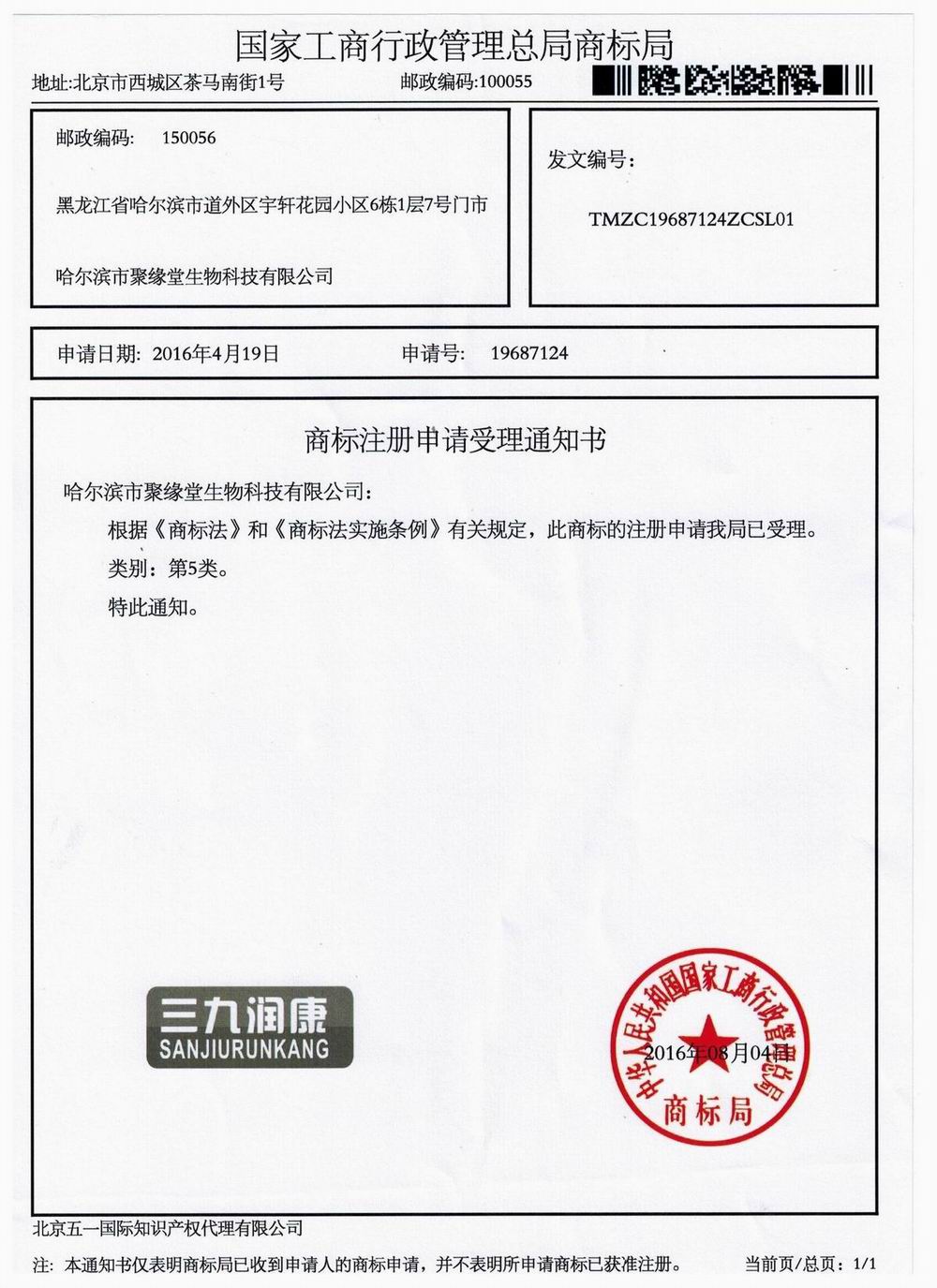 - 商品注冊(cè)受理書(shū)