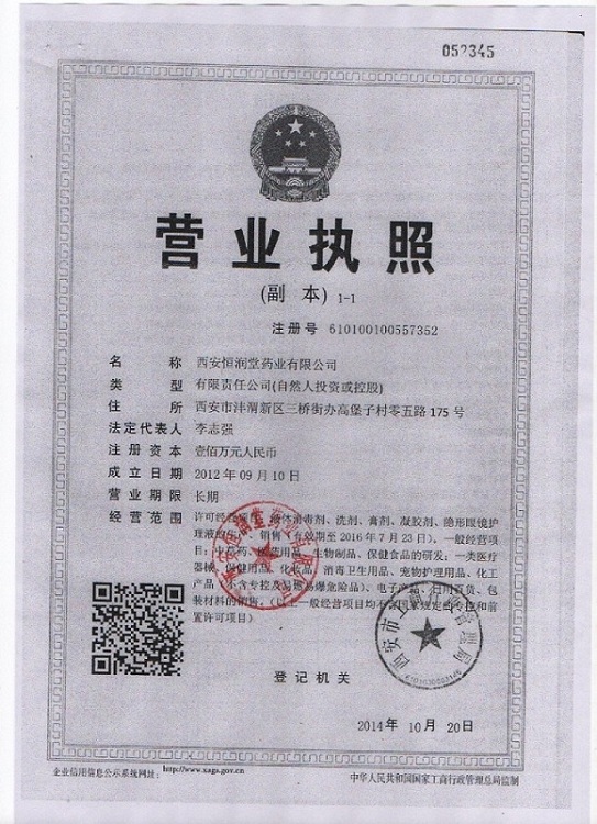 西安恒潤堂藥業(yè)有限公司坐落于十三朝古都----西安。是一家致力于現(xiàn)代生物技術(shù)、醫(yī)療器械、消毒產(chǎn)品的研發(fā)、生產(chǎn)、營銷為一體的專業(yè)性、多元化發(fā)展的高新技術(shù)企業(yè)。生產(chǎn)區(qū)占地2000多平方米,有消毒衛(wèi)生用品10萬級凈化車間、化妝品GMP認(rèn)證車間、醫(yī)療器械生產(chǎn)車間,配有國內(nèi)外先進(jìn)的生產(chǎn)設(shè)備,精密的檢驗、檢測儀器?缮a(chǎn)消毒衛(wèi)生用品(液體,膏體凝膠噴霧劑,隱形眼鏡護(hù)理液等)及一類醫(yī)療器械等。