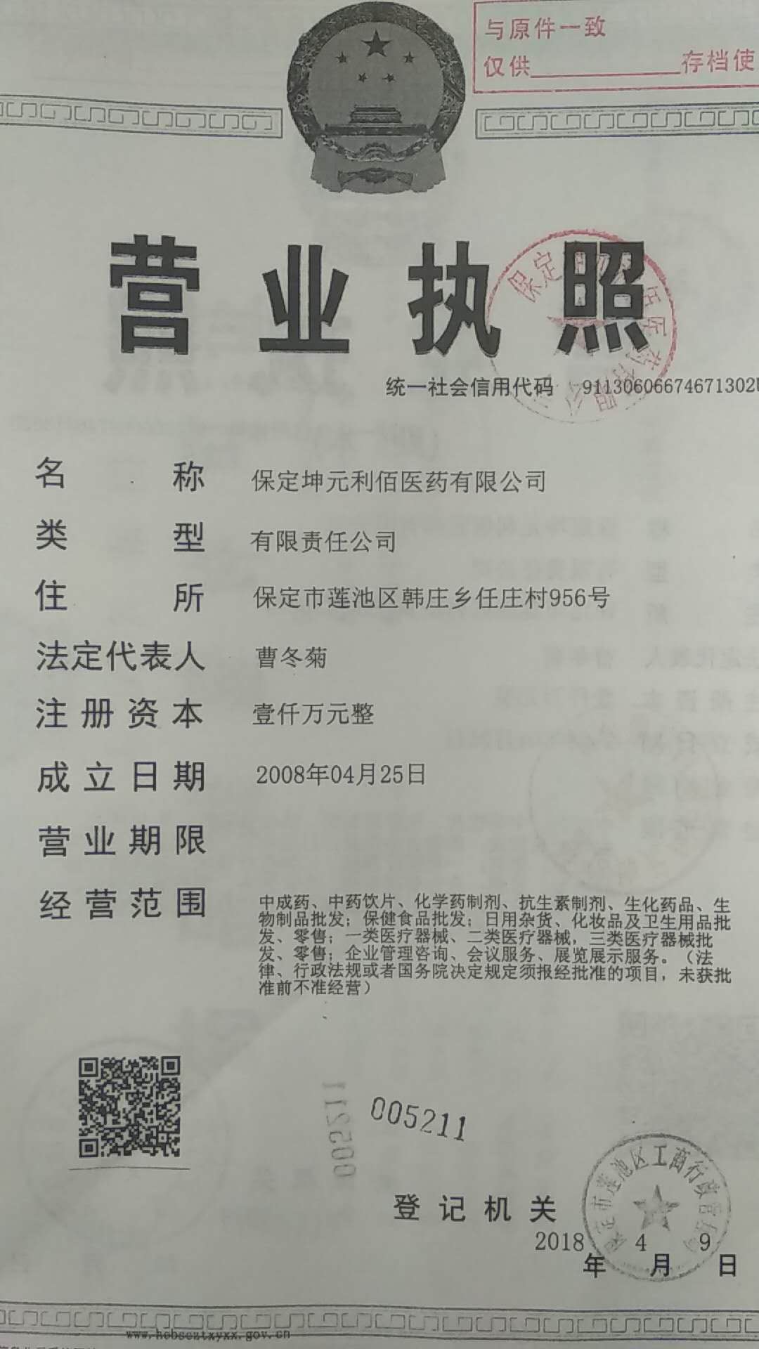 2.保定坤元利佰醫(yī)藥有限公司,延續(xù)了營(yíng)業(yè)部的光輝歷程,秉承了艱苦創(chuàng)業(yè)的價(jià)值理念和精神財(cái)富,以團(tuán)結(jié)開拓的精神和高度的社會(huì)責(zé)任感,不斷創(chuàng)新和自我完善,迎接新的挑戰(zhàn)。公司發(fā)展呈蒸蒸日上之勢(shì)。