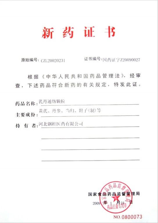 中國協(xié)和醫(yī)科大學(xué)、中國醫(yī)學(xué)科學(xué)院基礎(chǔ)醫(yī)學(xué)研究所進(jìn)行藥理實(shí)驗(yàn)證明:芪丹通絡(luò)顆粒能夠明顯改善神經(jīng)軸索變性和神經(jīng)脫髓鞘的病理改變,加快神經(jīng)傳導(dǎo)速度的作用;能明顯增強(qiáng)超氧化物歧化酶(SOD)的活性,降低神經(jīng)組織的紅細(xì)胞內(nèi)醛糖還原酶(AR)活性,減少山梨醇(SNS)、丙二醛(MDA)在組織的堆積;并對化學(xué)刺激性疼痛和物理溫、熱刺激性疼痛具有明顯的鎮(zhèn)痛作用。