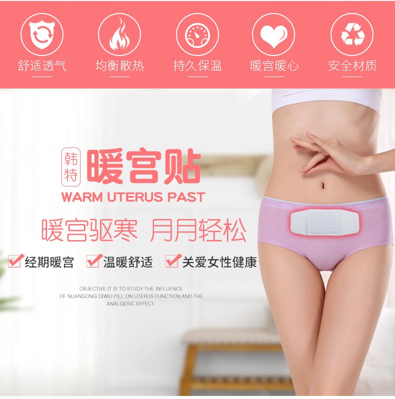 流產(chǎn)暖宮,促使產(chǎn)后子宮及血管盡快恢復(fù)正常的收縮規(guī)律,促進子宮復(fù)舊;暖宮貼還可以為女性月經(jīng)周期疼痛的治療。