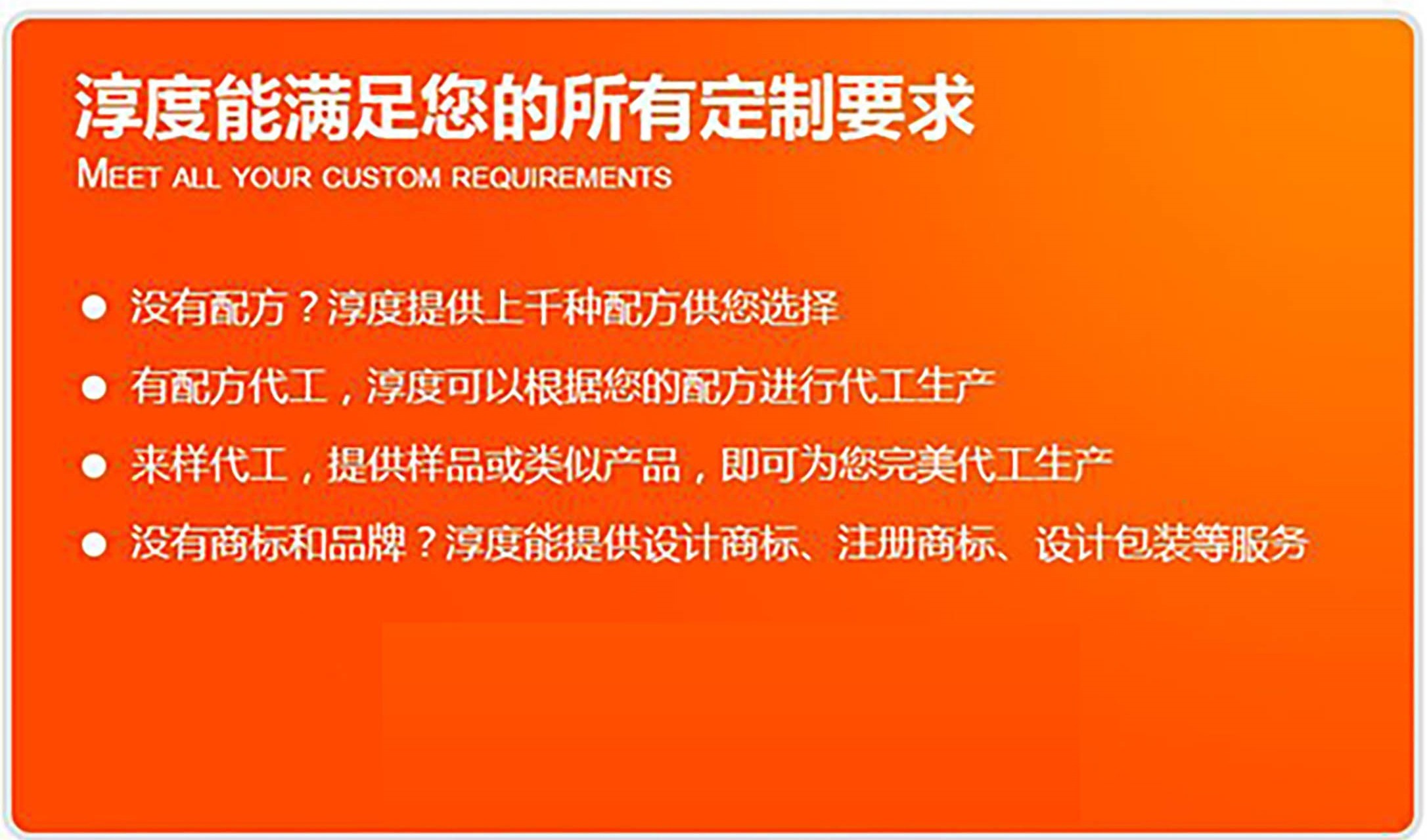 我公司是專業(yè)研發(fā)生產(chǎn)化妝品生產(chǎn)廠家,擁有2000多平米國(guó)家標(biāo)準(zhǔn)無(wú)菌生產(chǎn)車間,以生產(chǎn)藥品的標(biāo)準(zhǔn)生產(chǎn)化妝品面膜。是一家集醫(yī)療器械、膏 貼代加工 、 足貼代加工、退熱貼代加工、蒸汽眼罩貼牌生產(chǎn)、生物診斷試劑、高分子材料研發(fā)、醫(yī)療器械企業(yè)培訓(xùn)于一體的企業(yè)集團(tuán)。