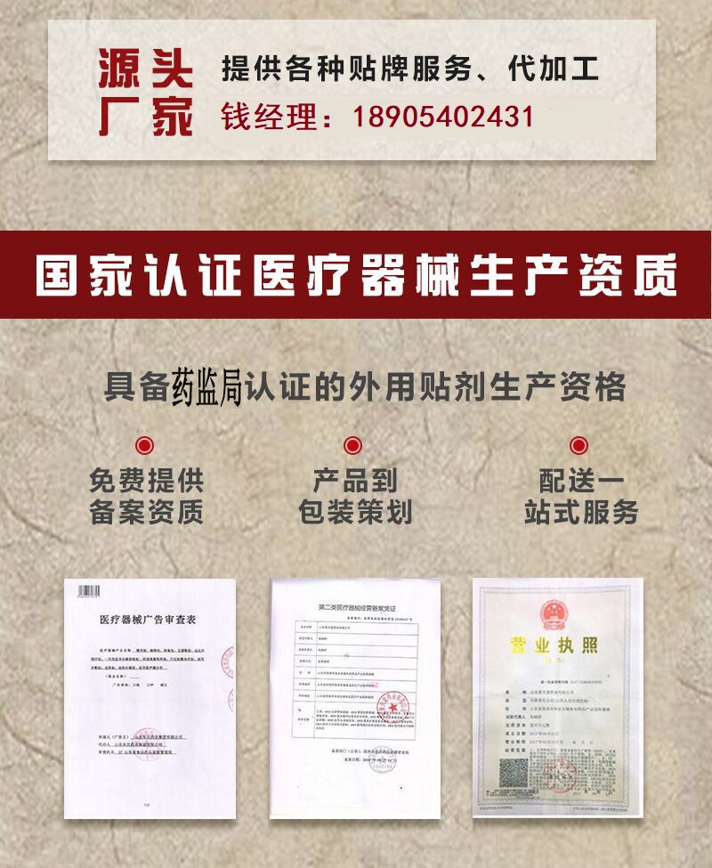 膏藥加工有幾種方法?膏藥如何代加工,黑膏藥代加工多少起做,膏藥代加工廠家電話:【18765822310】微信同號,可貼牌代加工定制,可代理拿貨,有多種治療疼痛的產(chǎn)品,歡迎來電咨詢,都是底價供貨的。