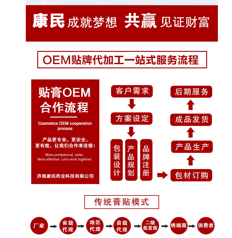 膏藥代加工的優(yōu)勢不僅僅是給客戶們節(jié)省了大量的資源消耗,可以讓客戶將更多的精力放在產(chǎn)品的推廣宣傳上面,也給客戶帶來了更優(yōu)質(zhì)的產(chǎn)品,幫助客戶更好的做市場。但是在這些優(yōu)勢的前提下客戶們得首先選擇一個信譽好講誠信的專業(yè)膏藥生產(chǎn)廠家。康民藥業(yè)是一家15年行業(yè)經(jīng)驗的知名實力源頭廠家、多年行業(yè)經(jīng)驗、文號資質(zhì)齊全、產(chǎn)品出口多個國家、價格優(yōu)惠低于同行、起訂量低、免費郵寄樣品、專業(yè)**研發(fā)生產(chǎn)團隊、研發(fā)生產(chǎn)經(jīng)驗豐富、生產(chǎn)實力雄厚、一站式服務(wù)。每年打造2000款市場爆款,累計為千家合作伙伴創(chuàng)造超30億**。有意向想了解可以撥打公司招商專線電話:18905402431(同微信)