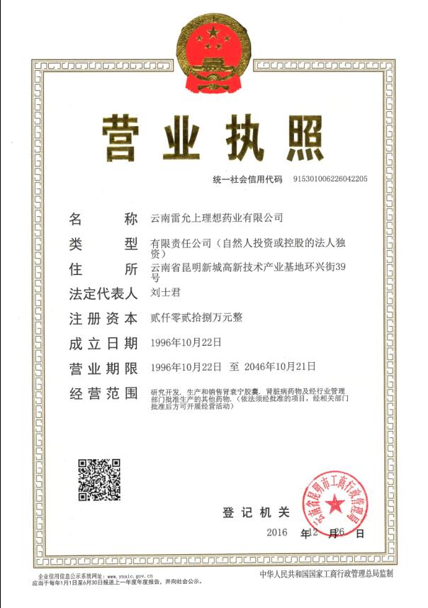 強(qiáng)大品牌,影響無疆:公司被中國互聯(lián)網(wǎng)新聞中心評選為“2014受公眾歡迎醫(yī)藥醫(yī)療品牌企業(yè)”;“理想”商標(biāo)被評為“云南省著名商標(biāo)”和“昆明市知名商標(biāo)”;“腎衰寧膠囊”獲得“云南省產(chǎn)品”稱號;“血尿安膠囊”獲得“昆明市產(chǎn)品”稱號。