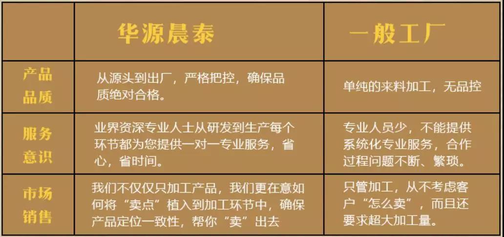 華源晨泰作為源頭廠家,滿足市場(chǎng)多種需求。無論何種方式合作,我們必將竭盡所能,只為打造您的專屬產(chǎn)品,助力品牌成功,決勝市場(chǎng)!