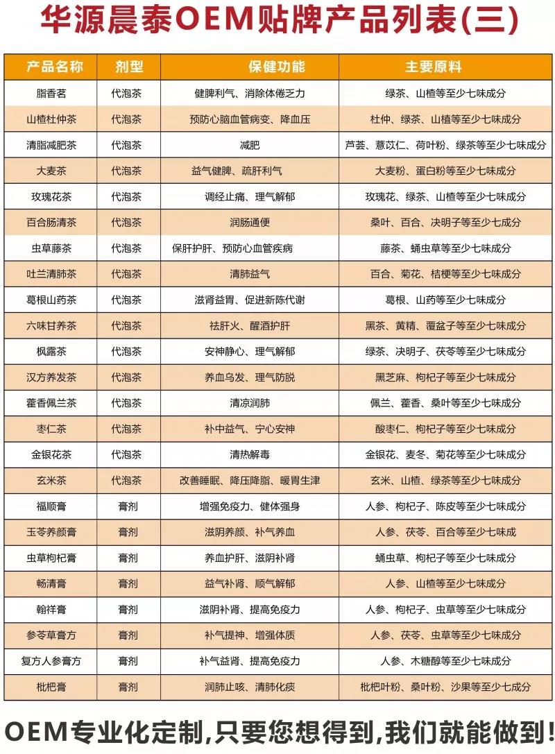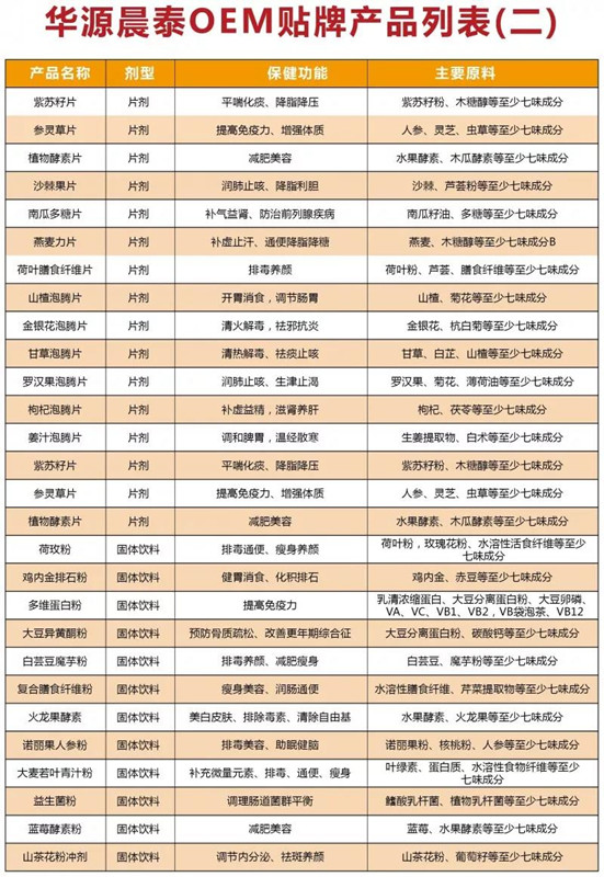 目前華源晨泰的生產(chǎn)范圍已經(jīng)涵蓋了硬膠囊、片劑(壓片糖果)、粉劑(固體飲料)、膏滋、口服液(酵素)、代用茶、凝膠(化妝品)等七大劑型。公司現(xiàn)有固體制劑生產(chǎn)線,正常班產(chǎn)情況下:片劑年生產(chǎn)能力 8000萬片以上,膠囊年生產(chǎn)能力3億粒以上,顆粒制劑(粉劑)年生產(chǎn)能力 5000萬袋以上。產(chǎn)能、產(chǎn)品差異化大幅提升,能夠滿足絕大部分市場(chǎng)需求。
