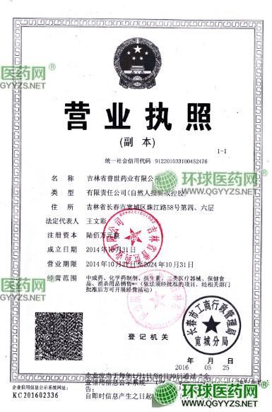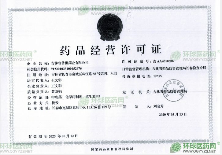 2015年06月01日吉林省食品藥品監(jiān)督管理局下發(fā)《藥品經(jīng)營許可證》,正式獲得藥品經(jīng)營資格。