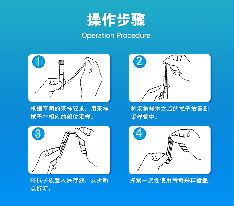 3、將拭子放置入保存液,從折斷點(diǎn)折斷。