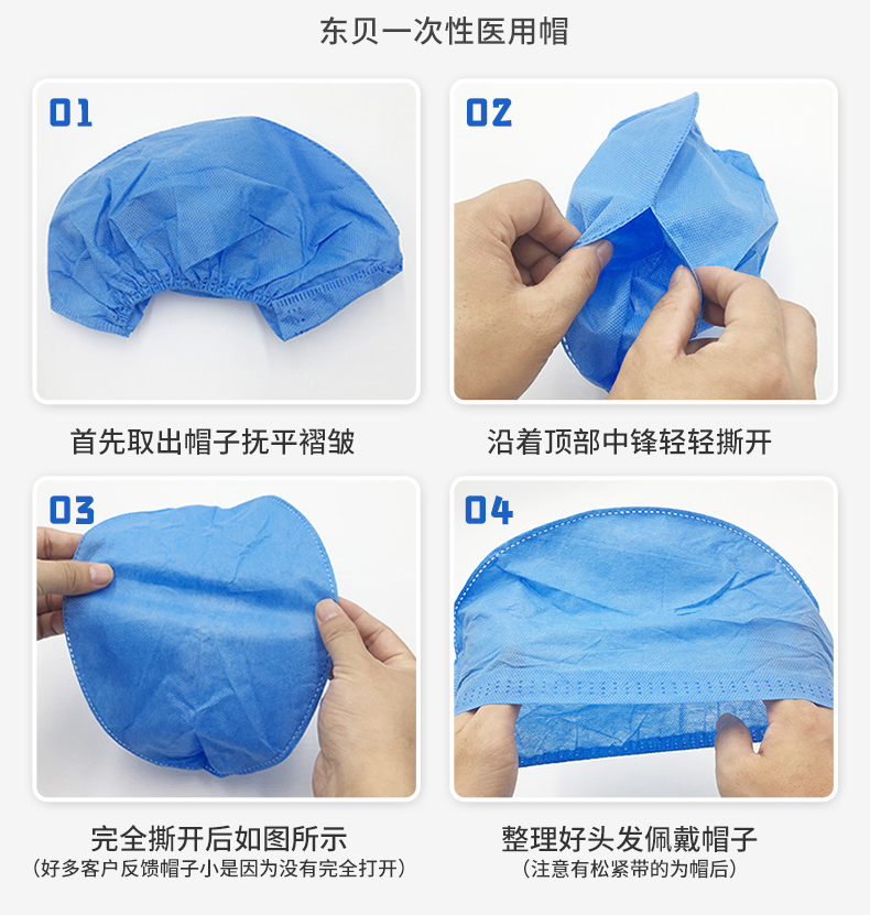 04、整理好頭發(fā)佩戴帽子(注意有松緊帶的為帽后)。