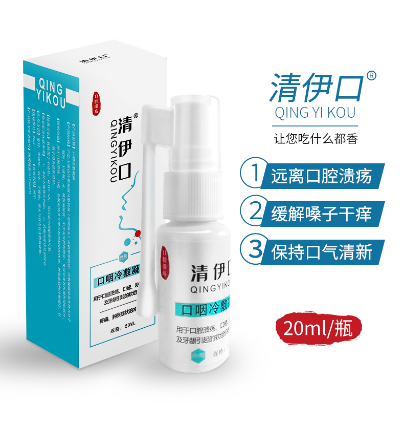 清伊口口咽噴劑,適用于口腔潰瘍、口瘡、粘膜創(chuàng)傷及牙齦引起的軟組織疼痛、腫脹癥狀的冷敷理療。 微信電話:13359223229