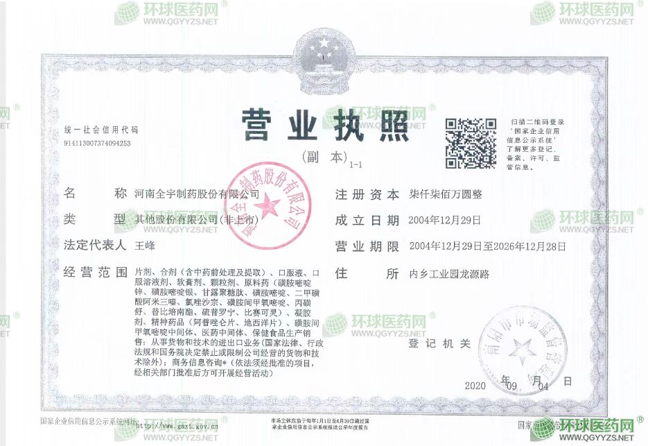 2004年8月通過了藥品GMP認(rèn)證(不含甘露聚糖肽),取得了片劑、口服液、軟膏劑、原料藥(磺胺嘧啶鋅、磺胺嘧啶銀)、口服溶液劑型的認(rèn)證證書;2009年9月又通過了藥品GMP復(fù)認(rèn)證,證書編號:豫K0079。