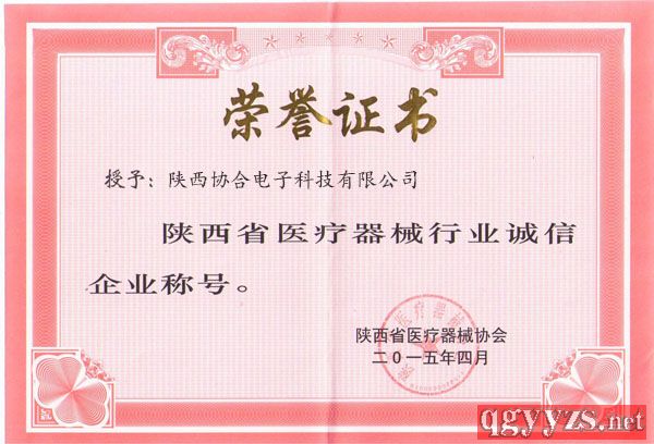 - 陜西省醫(yī)療器械誠信企業(yè)稱號(hào)