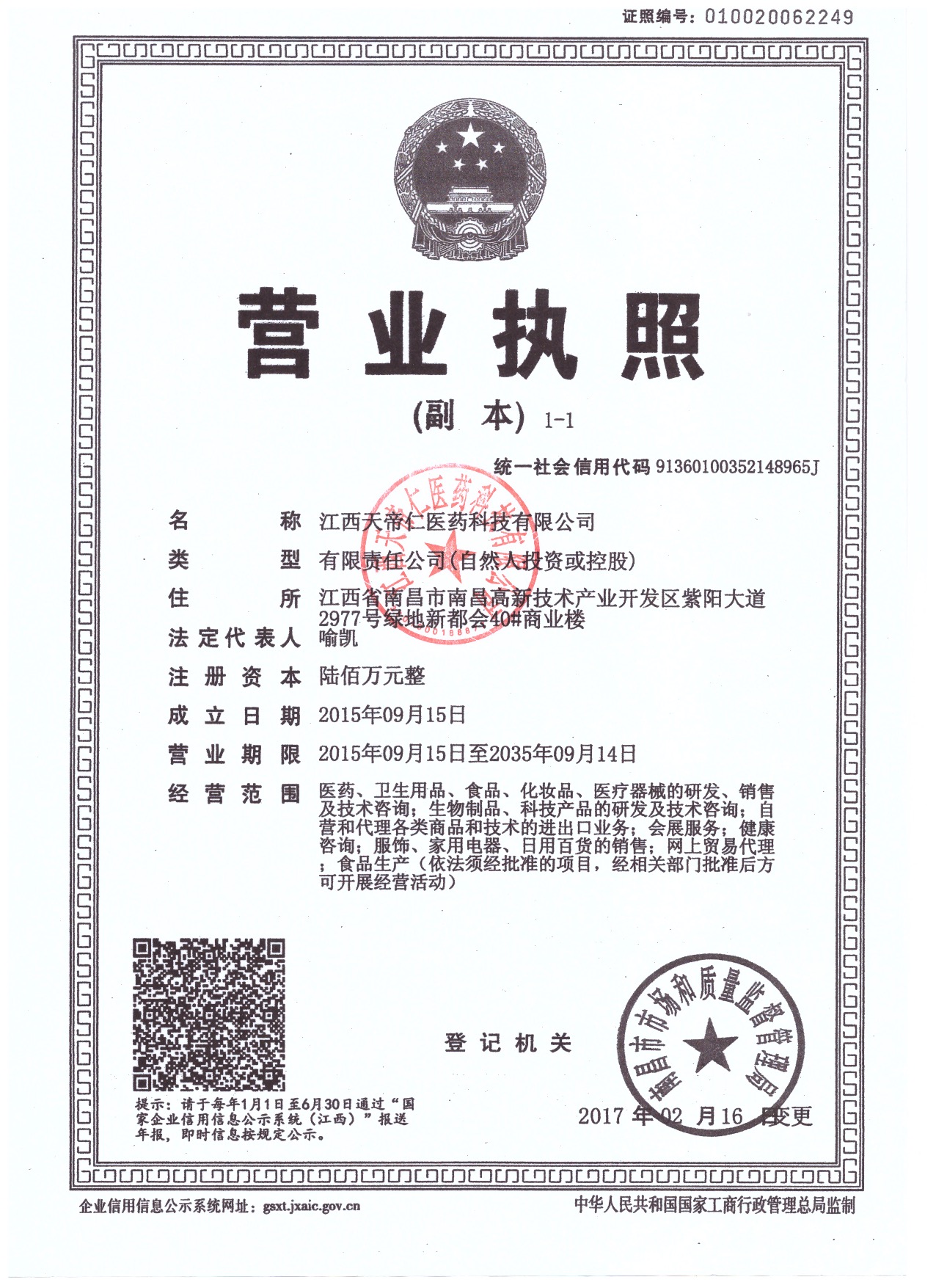 天帝仁醫(yī)藥地處英雄城南昌高新技術(shù)產(chǎn)業(yè)開發(fā)區(qū),是一家集醫(yī)藥、保健品、功能食品、特醫(yī)食品、營養(yǎng)型化妝品、珠寶服飾、養(yǎng)生型日化衛(wèi)生用品、醫(yī)療器械、生態(tài)養(yǎng)殖、特色教育、生物制品研發(fā)、銷售為一體的多元化、現(xiàn)代化高科技創(chuàng)新性企業(yè),公司秉承以多元化、國際化、科學化的發(fā)展戰(zhàn)略思路,擁有**強大的研發(fā)團隊機構(gòu)及知名高等學府深度合作并建立戰(zhàn)略合作關系,進行人才交流,信息交流及產(chǎn)品開發(fā)等工程建設。用嚴格的科學管理,完善的銷售服務和高效、靈活的運作方針,不斷推出競爭力更強、創(chuàng)新性更優(yōu)、科技含量更高的發(fā)明創(chuàng)新佳品。集團擁有:生態(tài)養(yǎng)殖、養(yǎng)生酒業(yè)、跆拳道散打培訓基地、醫(yī)藥科技、副食品貿(mào)易等多家全資下屬單位服務民眾、奉獻社會;堅持秉承“天帝仁、愛仁人”的宏偉大愛精神!堅定貫徹“利天下、接帝氣、健仁和”的深遠企業(yè)文化!堅守作為“改善人類健康及提高生命質(zhì)量而奮斗終生”的艱巨使命!天帝仁集團秉承:誠信為本,商譽至上,服務健康,奉獻社會,愿與您真誠合作,公司將與各合作伙伴共鑄雙贏、長期發(fā)展的戰(zhàn)略關系為理念,為進一步**打造“天帝仁”之輝煌而攜手共進!