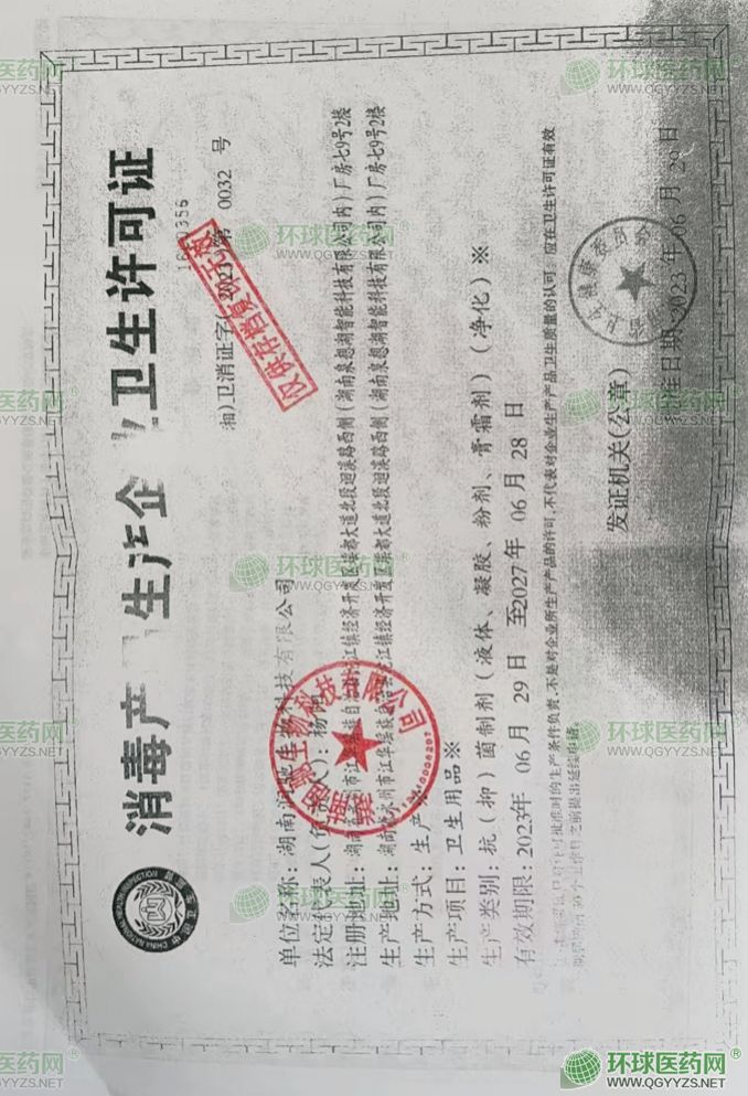 - 消毒產(chǎn)品生產(chǎn)許可證