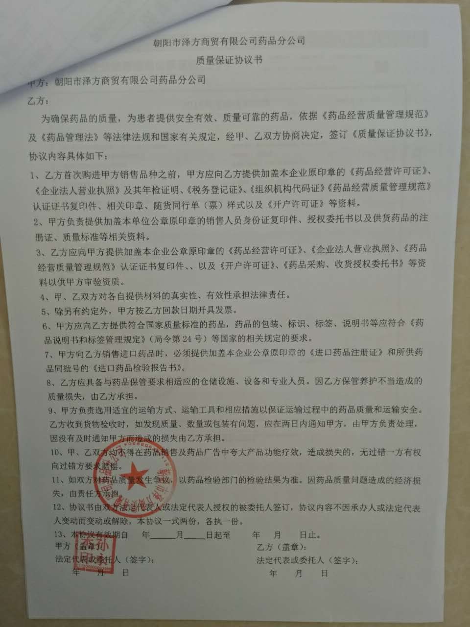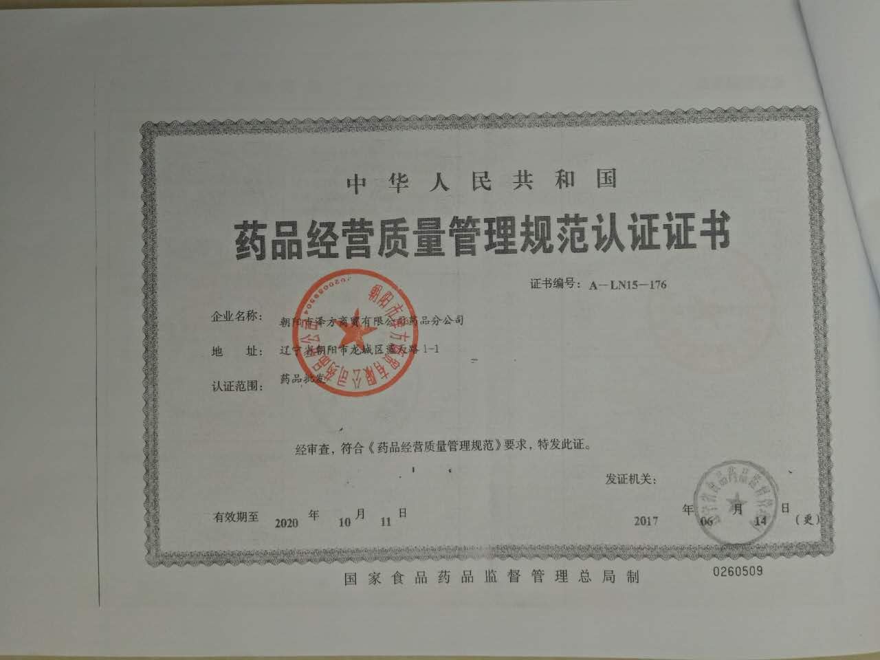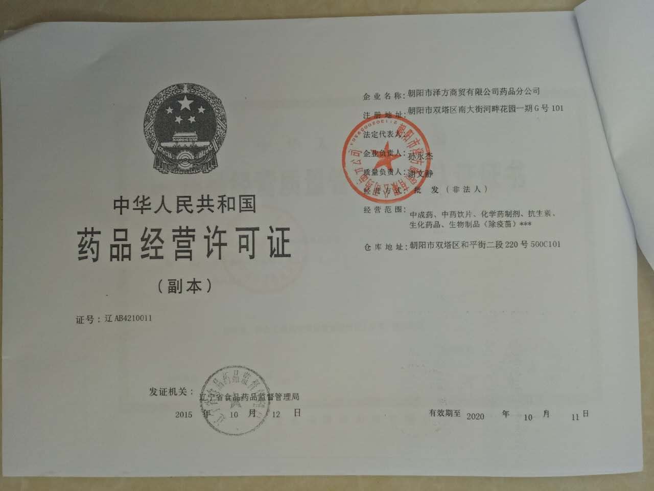 朝陽(yáng)市澤方商貿(mào)有限公司藥品分公司