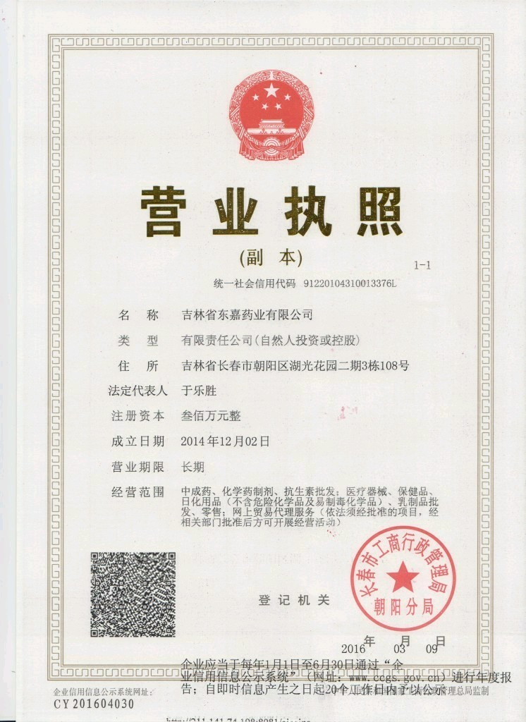 吉林省東嘉藥業(yè)有限公司是一家集醫(yī)藥研發(fā)、營(yíng)銷為一體的醫(yī)藥企業(yè)。