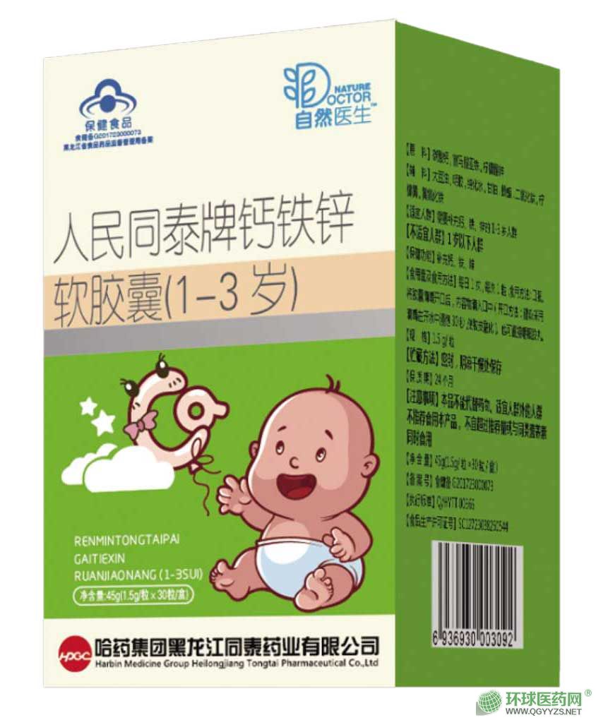 - 人民同泰牌鈣鐵鋅軟膠囊1-3歲 批準(zhǔn)文號: 食健備G201723000073規(guī) 格: 45g(1.5g/!30粒/盒)