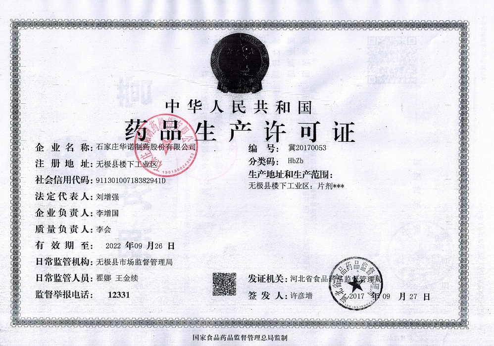 發(fā)證機(jī)關(guān): 河北省藥品監(jiān)督管理局