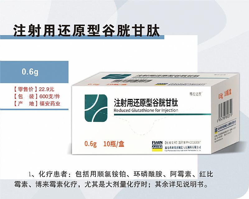 - 注射用還原型谷胱甘肽 批準(zhǔn)文號(hào): 國藥準(zhǔn)字H20183087規(guī) 格: 10瓶/盒