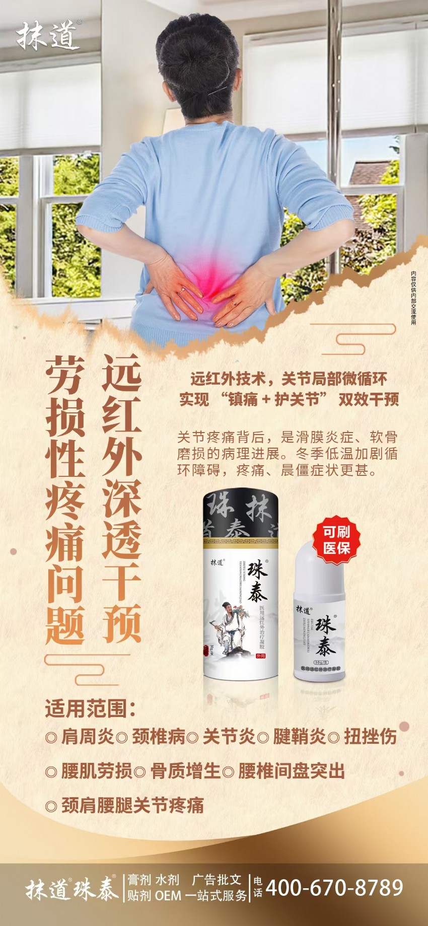 今天,我們特別為大家推薦兩款適用于關(guān)節(jié)疼痛與勞損問題的優(yōu)質(zhì)產(chǎn)品——抹道®導(dǎo)光凝膠和珠泰醫(yī)用遠(yuǎn)紅外治療凝膠。它們基于二類醫(yī)療器械標(biāo)準(zhǔn)打造,采用遠(yuǎn)紅外深透技術(shù),幫助緩解由肩周炎、頸椎病、關(guān)節(jié)炎、腰肌勞損等引起的腫、脹、痛問題。產(chǎn)品擁有正規(guī)醫(yī)保編碼,支持醫(yī)保刷卡,質(zhì)量可靠,使用更安心。