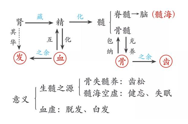 《黃帝內(nèi)經(jīng)》里說,腎主骨生髓。腎精具有主司骨骼生長(zhǎng)、化生骨髓的作用。腎藏精,精生髓,髓居于骨中稱骨髓。骨的生長(zhǎng)發(fā)育,有賴于骨髓的充盈及其所提供的營(yíng)養(yǎng)。腎精充足,髓化有源,骨骼得養(yǎng),則堅(jiān)固有力;若腎精不足,髓化無源,骨骼失養(yǎng),則見小兒囟門遲閉,骨軟無力,以及老人骨質(zhì)脆弱,易于骨折等。