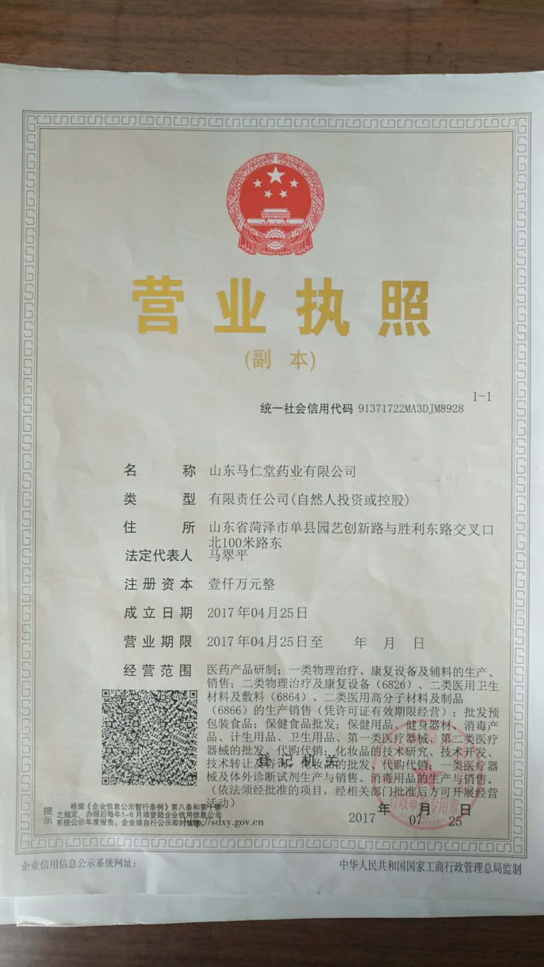 [企業(yè)法人]:馬翠平