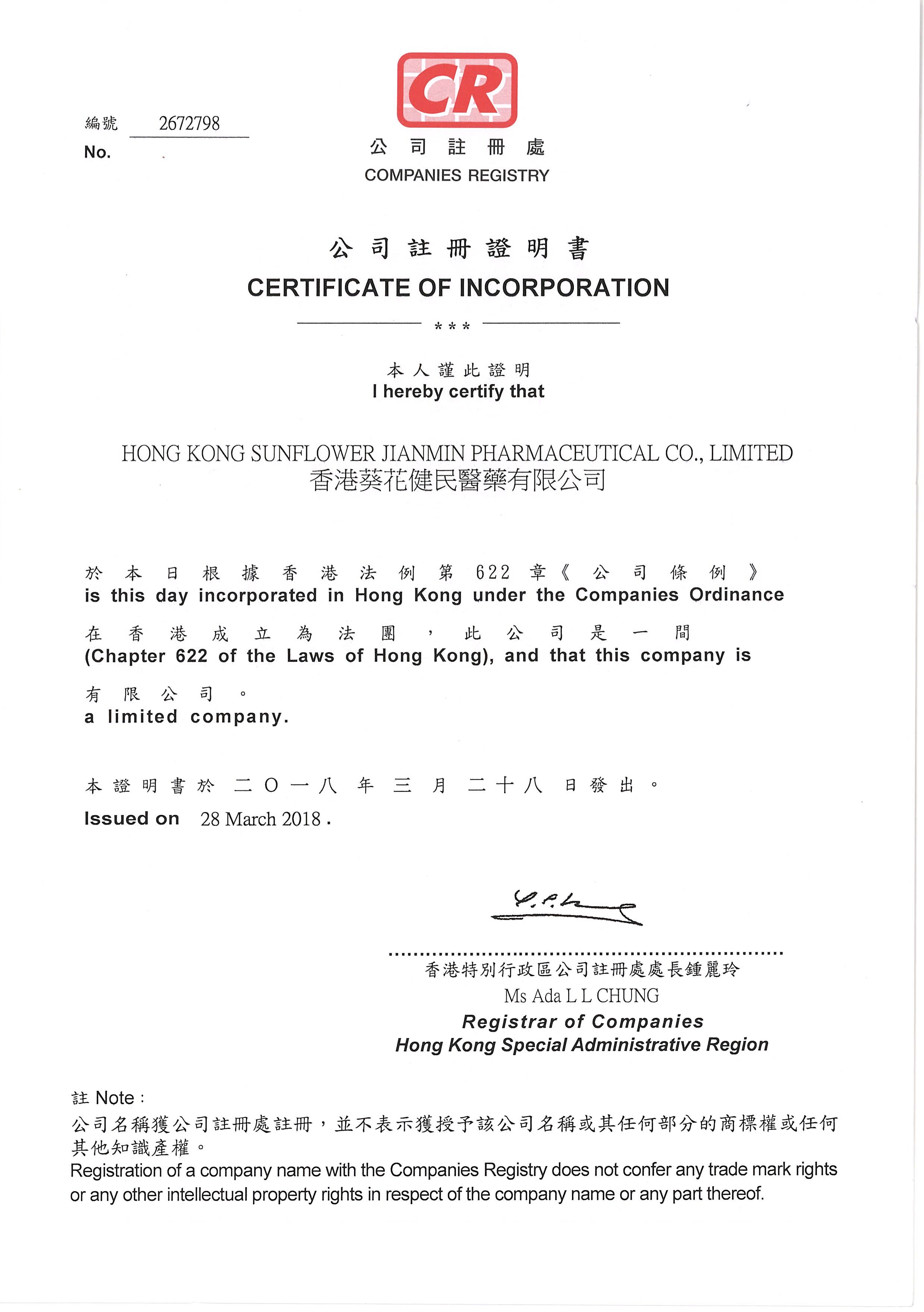 香港葵花健民醫(yī)藥有限公司