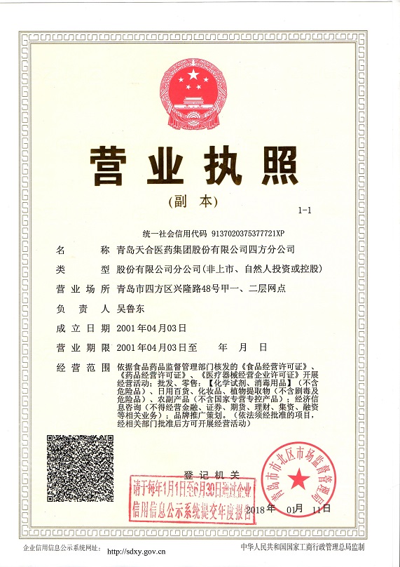 青島天合醫(yī)藥集團股份有限公司四方分公司