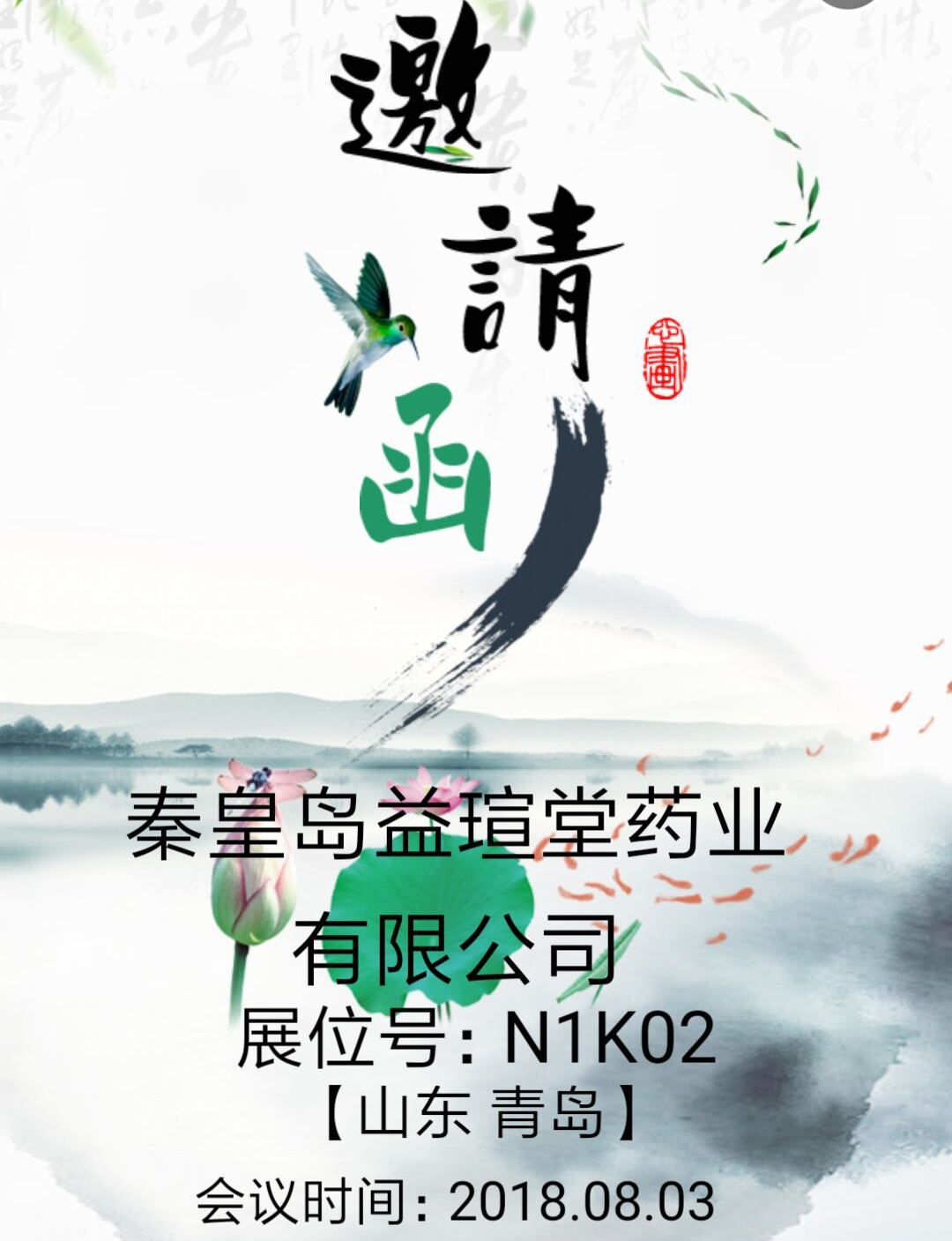 2018年8月3日-5日,展位號(hào)N1K02,秦皇島益瑄堂藥業(yè)全體同仁,屆時(shí)歡迎新老客戶蒞臨指導(dǎo)。