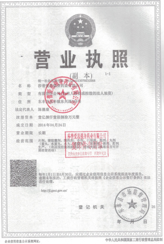 莎普愛思強(qiáng)身藥業(yè)有限公司(蜀中藥業(yè)(吉林)有限公司)