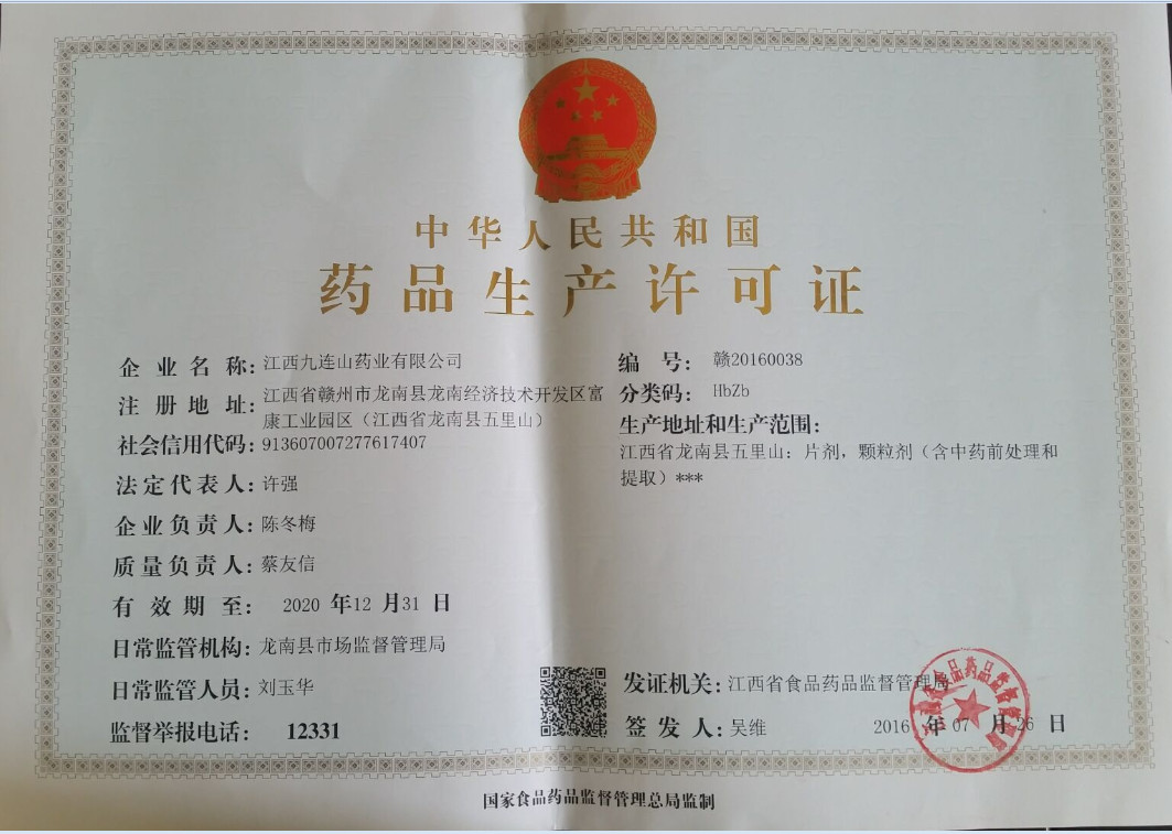 日常監(jiān)管機(jī)構(gòu): 江西省藥品監(jiān)督管理局