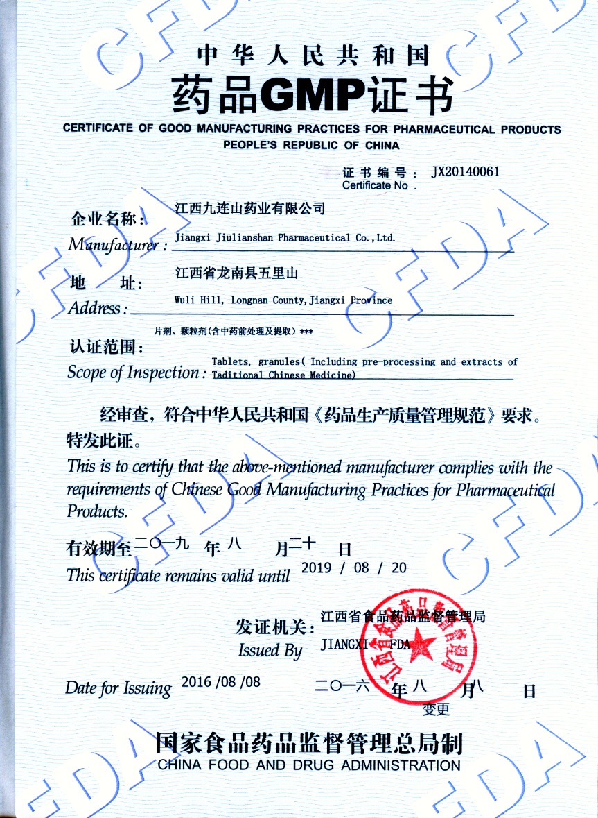 發(fā)證機(jī)關(guān): 江西省藥品監(jiān)督管理局