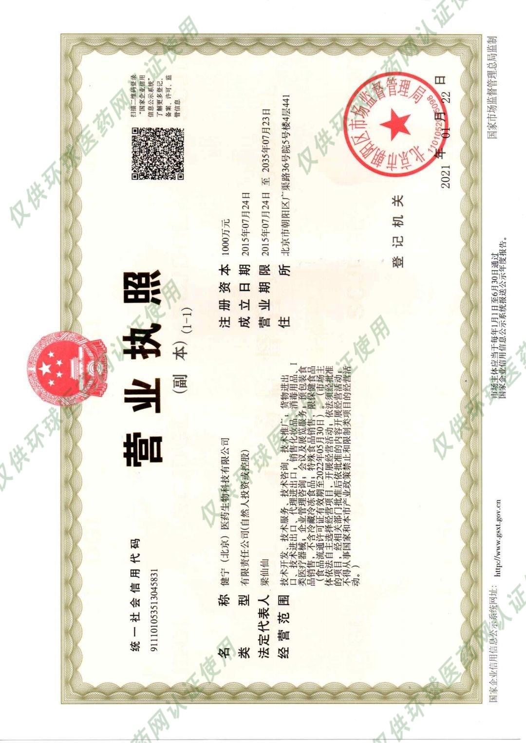 健寧(北京)醫(yī)藥生物科技有限公司