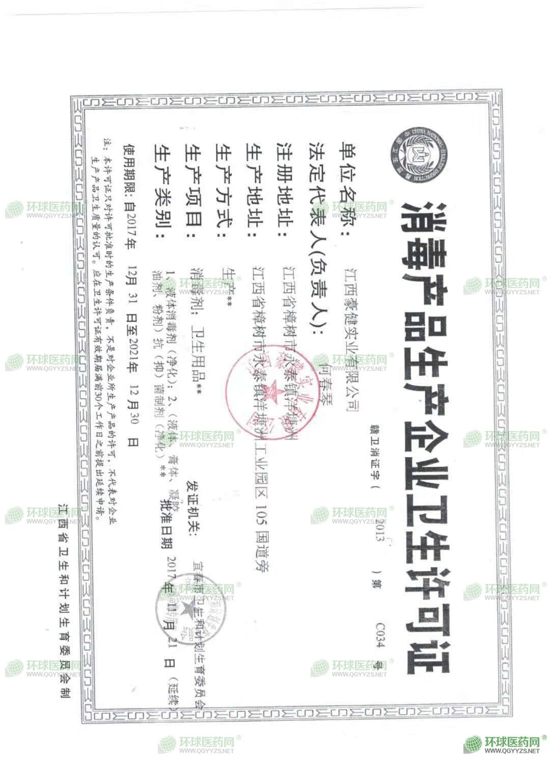 - 消毒產(chǎn)品生產(chǎn)企業(yè)衛(wèi)生許可證