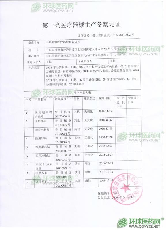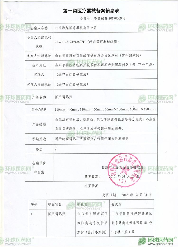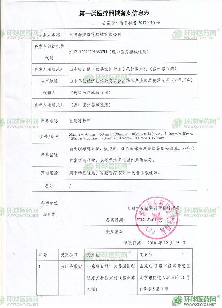 - 醫(yī)用冷敷貼信息表