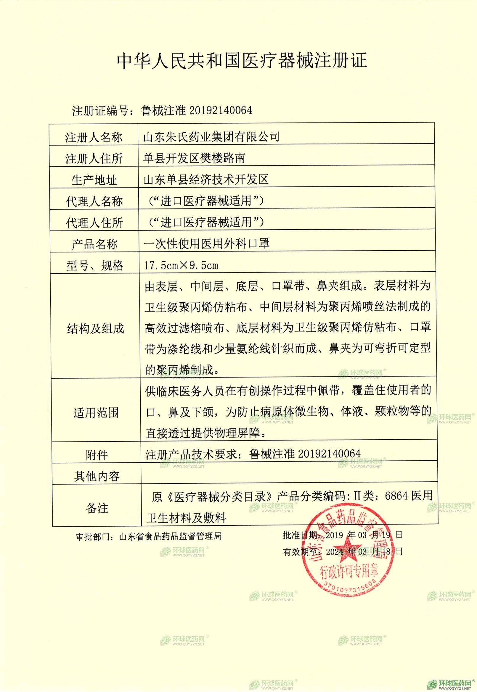 - 一次性外科口罩注冊證