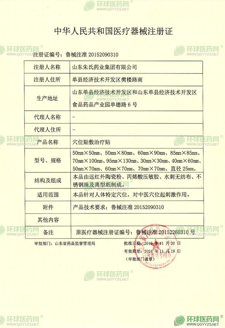 - 朱氏穴位貼注冊證