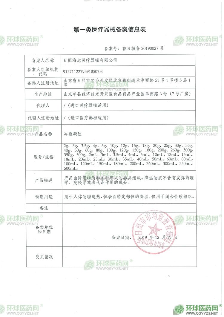 - 冷敷凝膠信息表