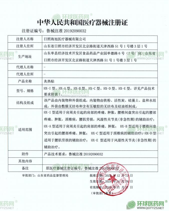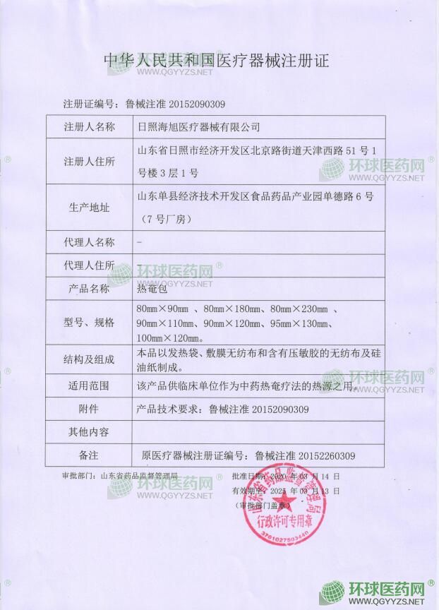 - 醫(yī)療器械注冊證-灸熱貼
