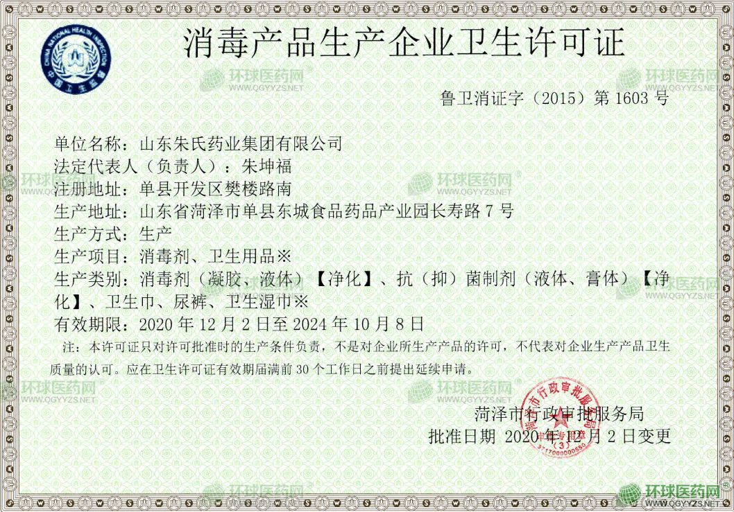 - 消毒產品生產許可證