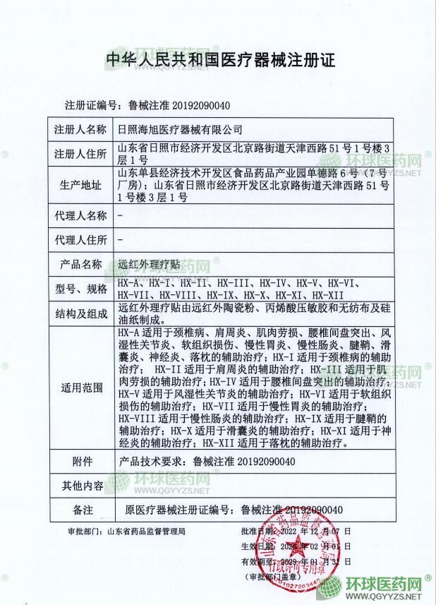 - 醫(yī)療器械注冊證-遠紅外理療貼