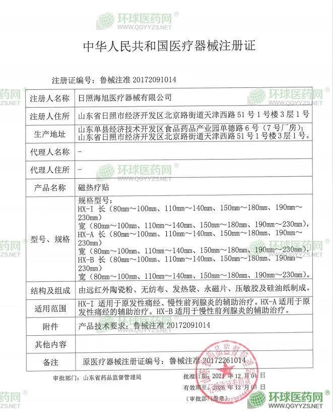 - 醫(yī)療器械注冊證-磁熱療貼