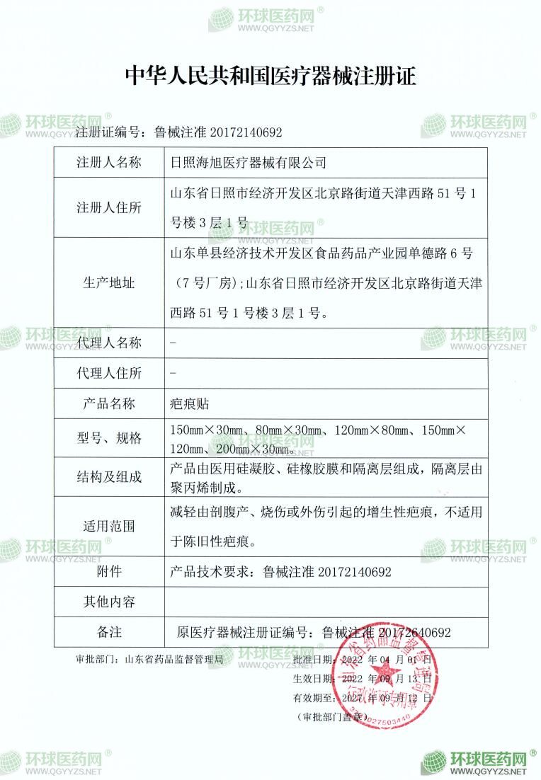 - 醫(yī)療器械注冊證-疤痕貼
