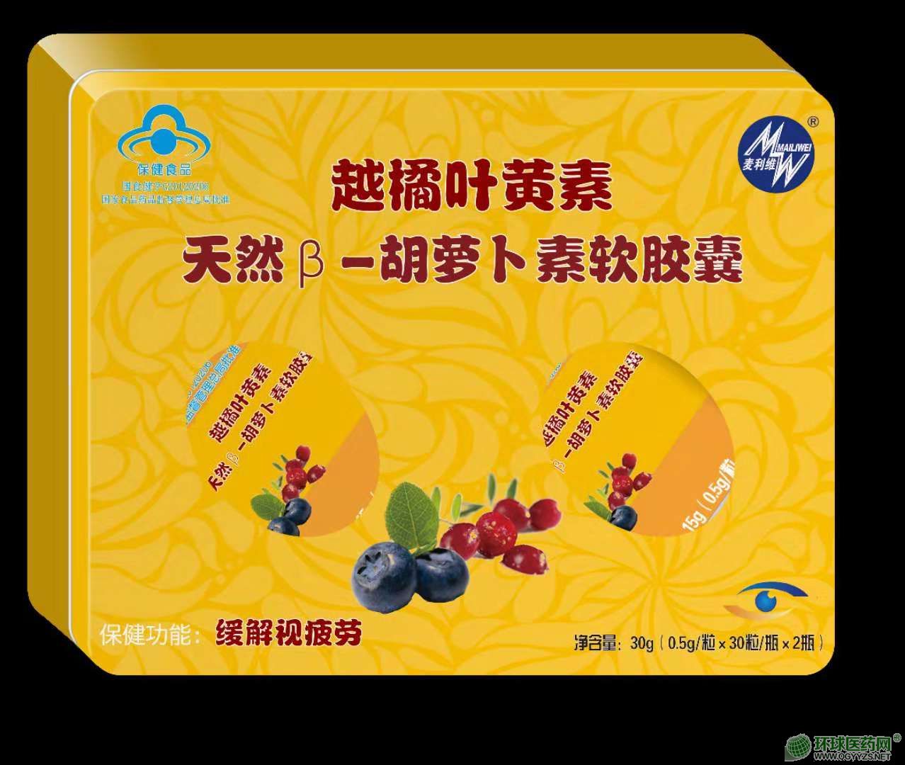 - 越橘葉黃素天然β-胡蘿卜素軟膠囊 批準(zhǔn)文號(hào): 國(guó)食健字G20120206規(guī) 格: 30g(0.5g/粒*30粒/瓶*2瓶)
