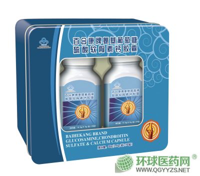 - 百合康牌氨基葡萄糖硫酸軟骨素鈣膠囊 批準(zhǔn)文號(hào): 國(guó)食健字G20120473規(guī) 格: 0.5g/粒*50粒