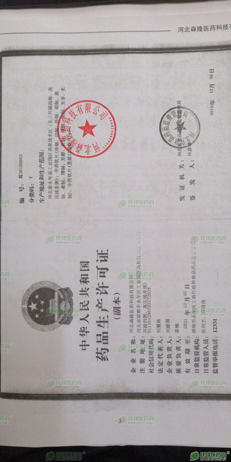 發(fā)證機(jī)關(guān): 河北省藥品監(jiān)督管理局