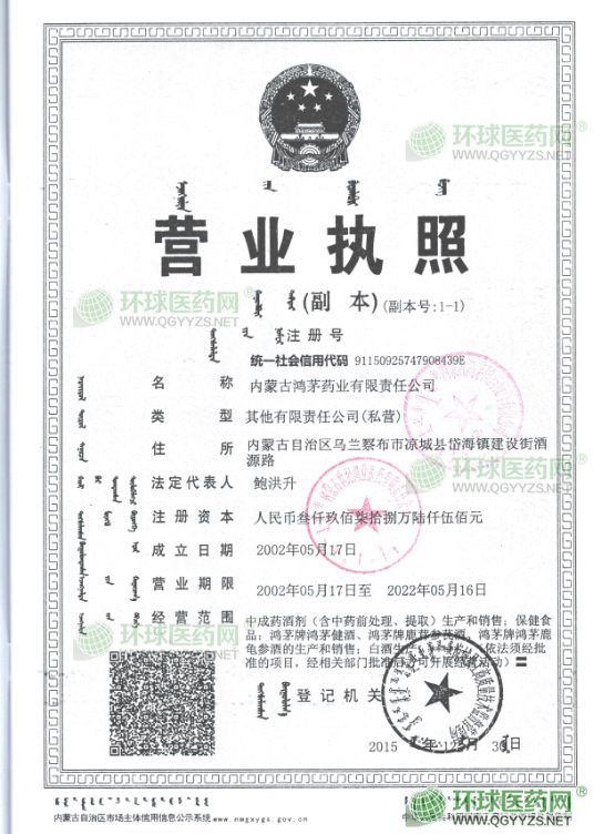 鴻茅國藥是涼城縣的支柱型企業(yè),自治區(qū)重點(diǎn)企業(yè)和自治區(qū)內(nèi)市場(chǎng)零售規(guī)模*大的蒙中藥生產(chǎn)企業(yè)。公司采取集團(tuán)化運(yùn)營管理模式,全資或控股的子公司有:內(nèi)蒙古世紀(jì)鴻業(yè)醫(yī)藥有限責(zé)任公司(藥品批發(fā))、內(nèi)蒙古鴻茅健康連鎖大藥房有限公司(藥品零售連鎖及網(wǎng)上藥房)、內(nèi)蒙古鴻商健康電子商務(wù)有限公司(電子商務(wù)運(yùn)營服務(wù))、內(nèi)蒙古鴻茅健康大酒坊有限責(zé)任公司(白酒生產(chǎn))。